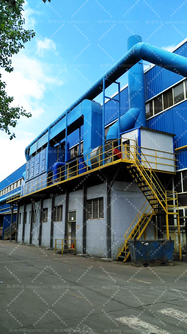 預(yù)處理生產(chǎn)線五臺機(jī)器共用一套廢氣處理系統(tǒng),采用兩級過濾+活性炭吸附+催化燃燒脫附工藝,合計總處置風(fēng)量為6萬m3/h;