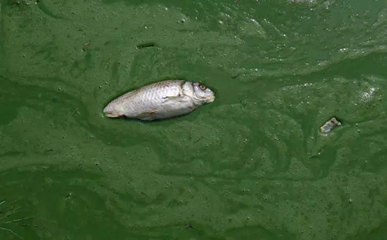 富營養(yǎng)化是指因水體中N、P等植物必需的礦質(zhì)元素含量過多而使水質(zhì)惡化的現(xiàn)象。水體中含有適量的N、P等礦質(zhì)元素,這是藻類植物生長發(fā)育所必需的。但是,如果這些礦質(zhì)元素大量地進(jìn)入水體,就會使藻類植物和其他浮游生物大量繁殖。這些生物死亡以后,先被需氧微生物分解,使水體中溶解氧的含量明顯減少。接著,生物遺體又會被厭氧微生物分解,產(chǎn)生出硫化氫、甲烷等有毒物質(zhì),致使魚類和其他水生生物大量死亡。發(fā)生富營養(yǎng)化的湖泊、海灣等流動(dòng)緩慢的水體,因浮游生物種類的不同而呈現(xiàn)出藍(lán)、紅、褐等顏色。富營養(yǎng)化發(fā)生在池塘和湖泊中叫做“水華”,發(fā)生在海水中叫做“赤潮”。工業(yè)廢水、生活污水和農(nóng)田排出的水中含有很多N、P等植物必需的礦質(zhì)元素,這些植物必需的礦質(zhì)元素大量地排到池塘和湖泊中,會使池塘和湖泊出現(xiàn)富營養(yǎng)化現(xiàn)象。池塘和湖泊的富營養(yǎng)化不僅影響水產(chǎn)養(yǎng)殖業(yè),而且會使水中含有亞硝酸鹽等致癌物質(zhì),嚴(yán)重地影響人畜的安全飲水。