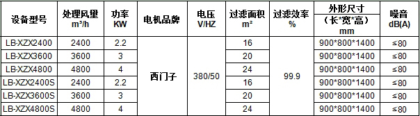 四、LB-XZX移動(dòng)式焊煙凈化器設(shè)備參數(shù):