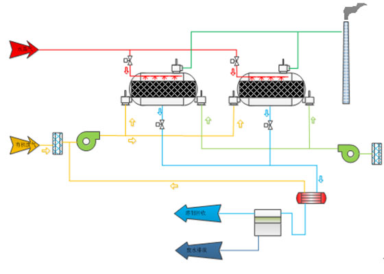 如果采用吸附回收方式,則通過吸附后的有機(jī)廢氣可以達(dá)標(biāo)排放,同時(shí)經(jīng)過冷凝回收的高價(jià)值的有機(jī)溶劑可以循環(huán)利用與生產(chǎn)線,具有很大的經(jīng)濟(jì)效益。